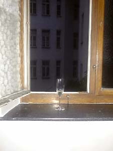 ... Kunstprodukte, 15. Juli Eröffnung der "Wahlverwandtschaften", anwesend geladene Gäste, Schaulustige und -spieler, sog. Künstler und an der sog. Kunst Interessierte. Der Kulturreferent hält eine kurze Rede, Herzl-Stadt München Lebewohl, begrüßen wir im Millionendorf die Metropole. Kulturelle Vielfalt im Mikrokosmos kennzeichne jene, sagt er, die Kunstwelt applaudiert. Wo sind die Türken, fragt mein Nachbar. Nach Rümelin kommt Pöppel, zur Überleitung improvisierte Intermezzi, barocke Tramezini, Goethehappen und bizarres Flötenspiel. Professor Pöppel erklärt die Goethestrasse zum Kunstwerk und den Symmetriebruch zwischen Leben und Kunst. Der Sekt schmeckt lauwarm, später im Mariandl ist kein Glas mehr da. Die Karawane zieht weiter, mit ihr zieht die Kunst. "Zimmer mit Absicht", Vernissage im Hotel, im Cafe am Beethovenplatz Klavier und Gesang; wunderschön gesungene Lieder. Zuletzt steht die Ausstellung von C. Albert auf dem Programm, "Fremde" in der Werbeagentur Zur großen Freiheit. Ich erkläre mir die Symmetrie zwischen Kunst und Kommerz, Freiheit, die ich meine. Dann kauft mir Mephisto einen bunten Luftballon, ich fliege fort, vom Himmel durch die Welt zur Hölle. Ins Land der Illusion. |