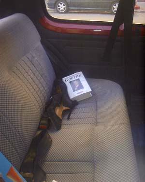 Nachdem die Goethestrasse nun zum Kunstwerk erklärt wurde, dachte ich, suche ich sie, die Kunst. Finde sie auf dem Rücksitz eines Autos:
