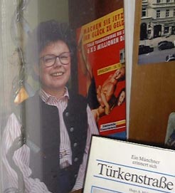 ... Prince Albert's Cherry Vanilla, 23. November Glückszahl: 59. Darauf habe ich gewartet, dies ist das Haus. Das Haus mit der Lotto-Toto Annahmestelle, Inhaber Walter und Inge Kiermeier. Die winzigen Schaufenster dilletantisch auf Dokumentation dekoriert, Hügelkulisse mit Stoffrestbelag, nachkriegsfarben moddrig. Zwei rührende Schreine der Selbstreflexion. In der Auslage: Hella Schlumbergers Türkenstrassen Buch, "Die Münchner Boheme", "Yatsum, eine Donquichotterie aus Schwabing"; Fotos, Fassadenbilder, Zeichnungen, Zeitungsartikel; rechts Frau Kiermeiers ultimatives ELSER-Fenster. Er wohnte auf Nummer 94 steht hier. Ich habe mich beeilt. Wollte beizeiten da sein, bei Zeiten der Ladenöffnung, vor 18 Uhr. Frau Kiermeier befragen, hatte mir schon alles im Mund zurecht gelegt: Frau Kiermeier, woher Ihr Interesse an der Türkenstrasse? Frau Kiermeier, wie oft aktualisieren Sie das Schaufenster? Frau Kiermeier, was verbindet Sie persönlich mit Georg Elser? Frau Kiermeier, spielen Sie Lotto? Frau Kiermeier, wo ist Walter? Augenzeugen berichten von zwei Frauen hinter der Theke, eine alt, eine jung. Mutter, Tochter? Frau Kiermeier mit Freundin? Zehn vor sechs, der Laden zu. Mist. Montag geschlossen. Heute ist Dienstag. Frau Kiermeier, wo sind Sie? Im Schnee versackt? Den Tag zu Hause im Warmen verbracht, pfeif auf die Süddeutsche Klassenlotterie, holts' eure Rauchwaren im Automat; Luxus der etablierten Einzelhändlerin, wegen Krankheit geschlossen. Der Winter kneift in meine Zehen, Flocken tanzen vor der Linse. Recherche vertagt, Frau Kiermeier, ich komme wieder! |